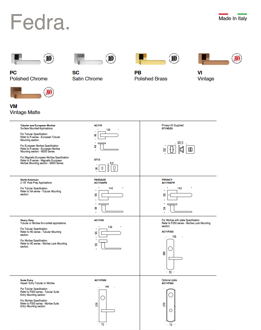 Дверная ручка Colombo FEDRA AC11RSB хром матовый